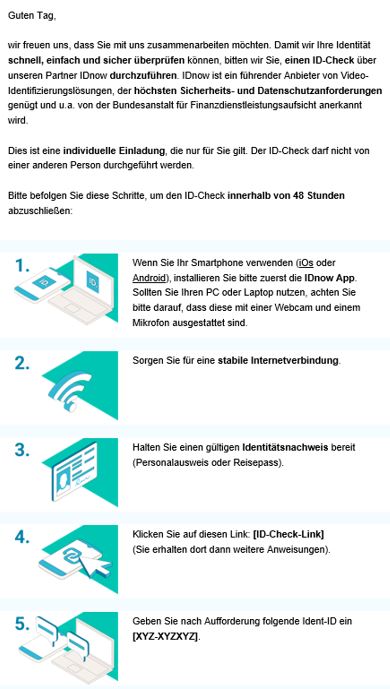 In addition, we would also like to point out IDnow's data protection policy regarding use of the IDnow website and the IDnow smartphone apps: https://www.IDnow.de/datenschutz