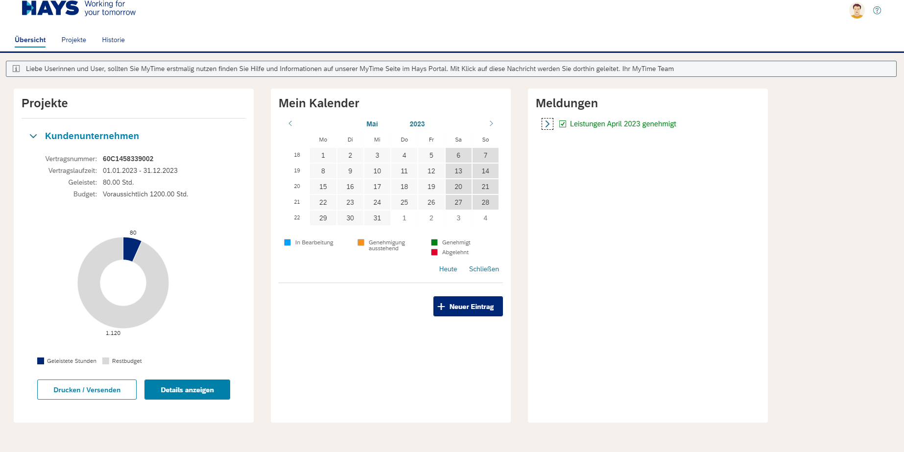Mithilfe von MyTime by Hays können Sie Ihre geleisteten Zeiten digital von unterwegs oder am PC erfassen und der Projektleitung zur Genehmigung zusenden. Auch für Kunden ist MyTime by Hays die perfekte Lösung: Mit nur einem Klick sind Ihre Zeiten genehmigt.